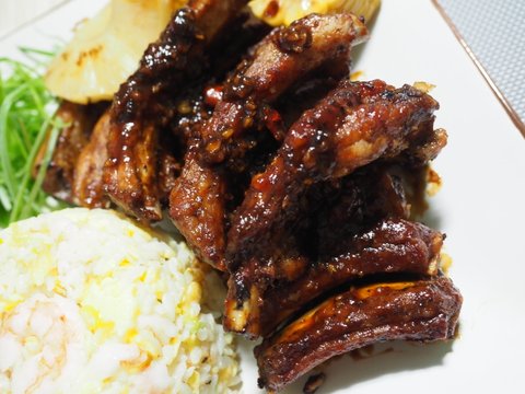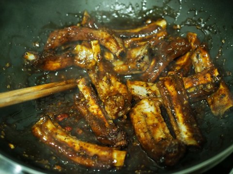 9. 다 익은 등갈비를 양념에 넣고 불에 조리듯이 굽고