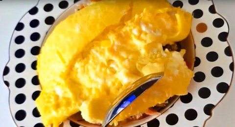 그 위에 오믈렛을 올려서 톡! 터트려 줍니다~