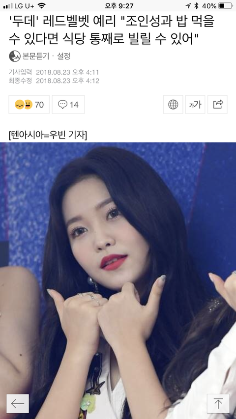 예리 기사에 댓글 봄??ㅋㅋㅋ