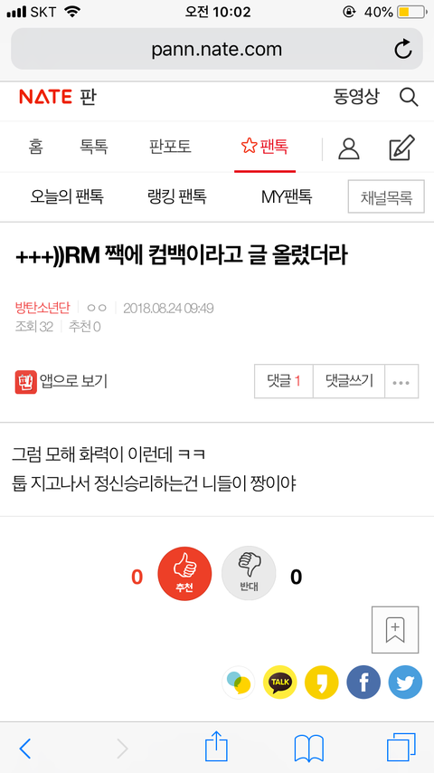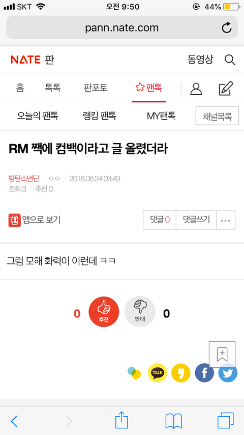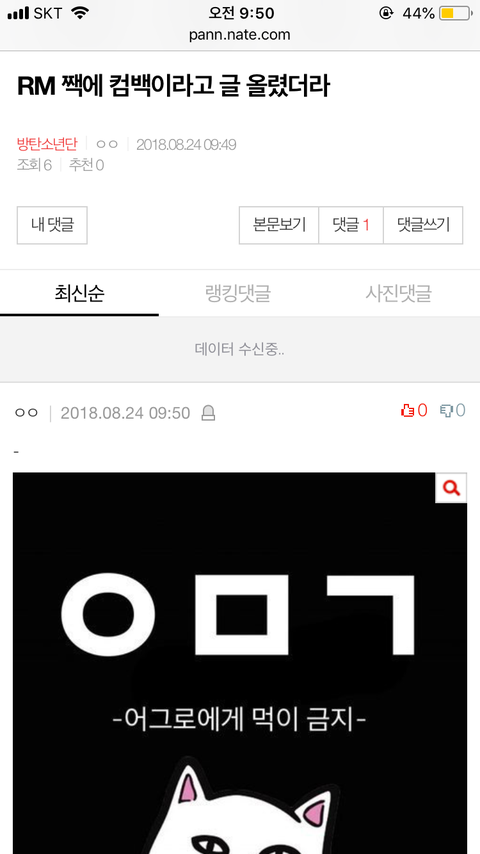 +++))RM 짹에 컴백이라고 글 올렸더라