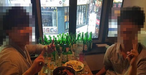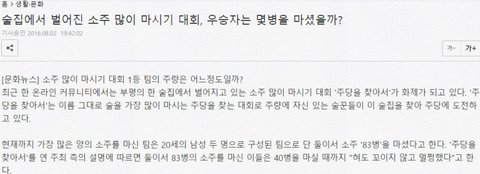 술집에서 벌어진 소주 많이 마시기 대회