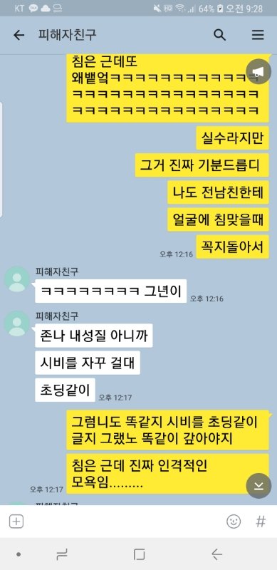 똑같이뱉어줫고주먹질까지햇는데