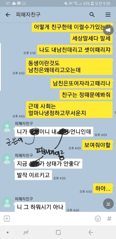 그러고 서로 다시감정차서 더 톡으로 각자쌓아온거 등등 장문글로 싸움. 인연끈자이말나올정도