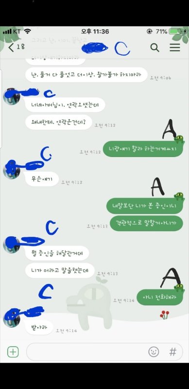도중 C가 A에게 화해요청을하고 A가 사과를 받아줌.