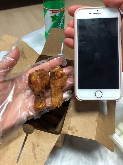 사진올려볼테니 치킨상태랑 크기 참고하세요 휴대폰은 아이폰8 사이즈 입니다.
