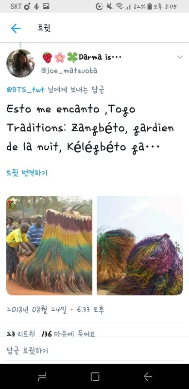 아프리카 애들이 이 방탄 뮤비에 나오는 탈? 쓴 거 토고 전통 인형이라고 하고 있음;;ㅋㅋㅋ