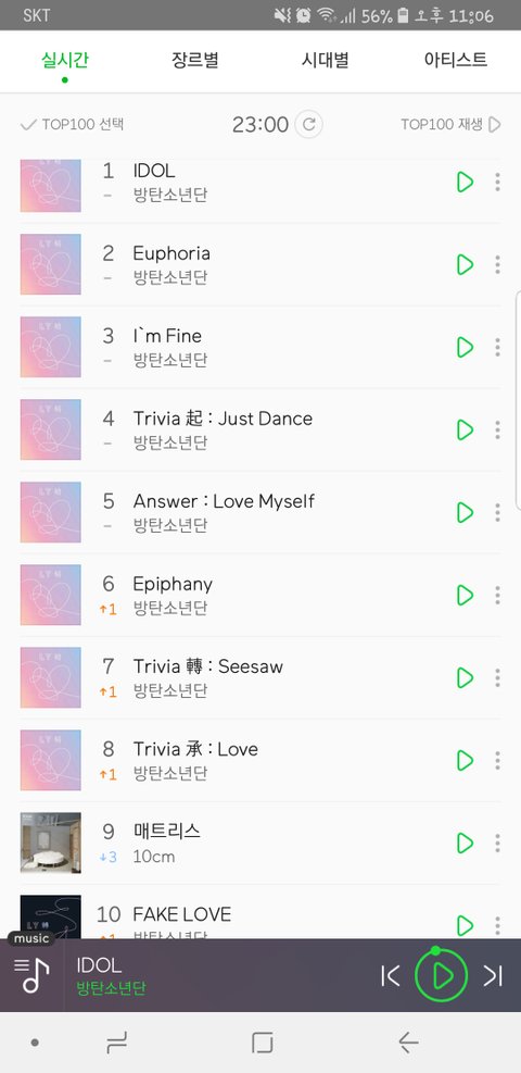 덕분에 남동생 리스트에도 방탄노래 들어가있네요
