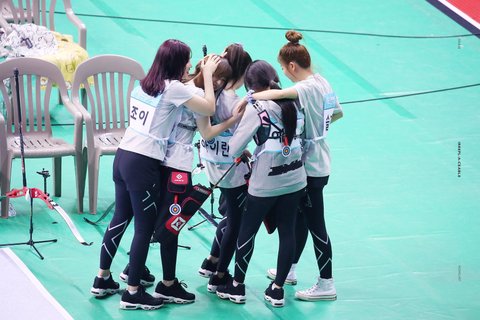 아육대 사진들 보니까 전혀 안그런데? 웬디가 아이린 감싸고 기대고 있고 다 양궁 이겨서 기뻐보여