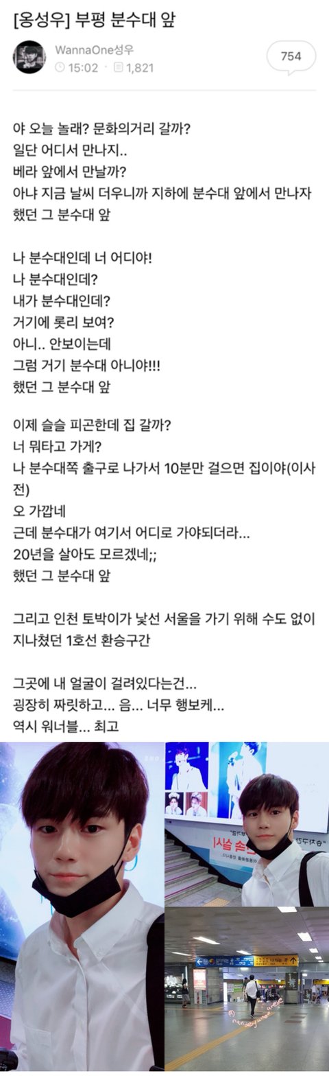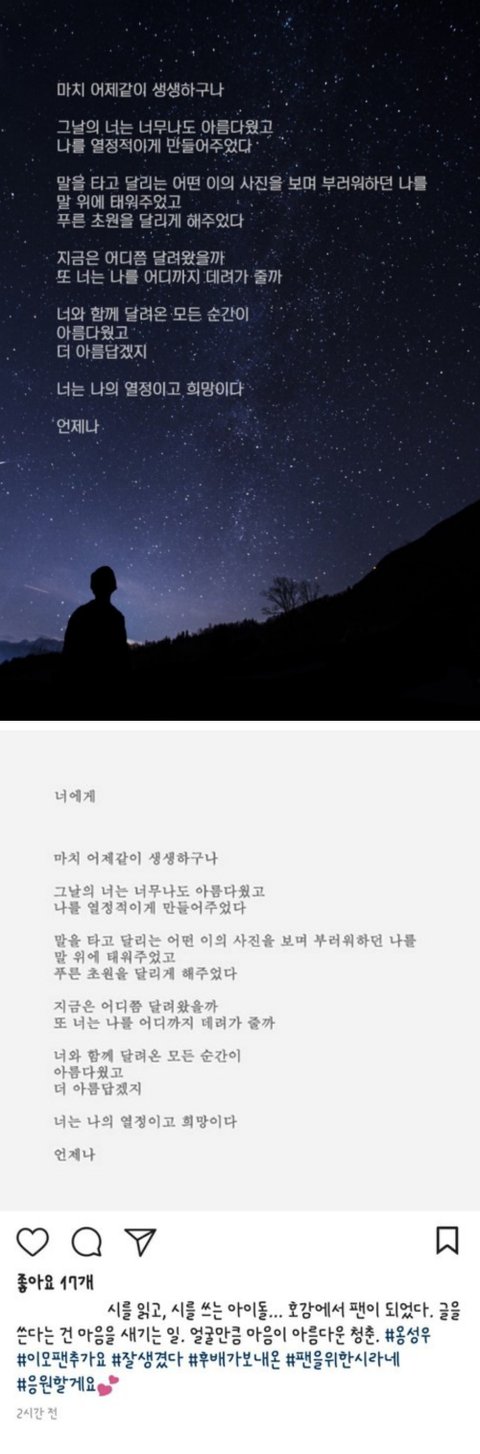 20년동안 라디오작가하신분한테 글솜씨도 인정받고 옹성우팬까지 되었다고함