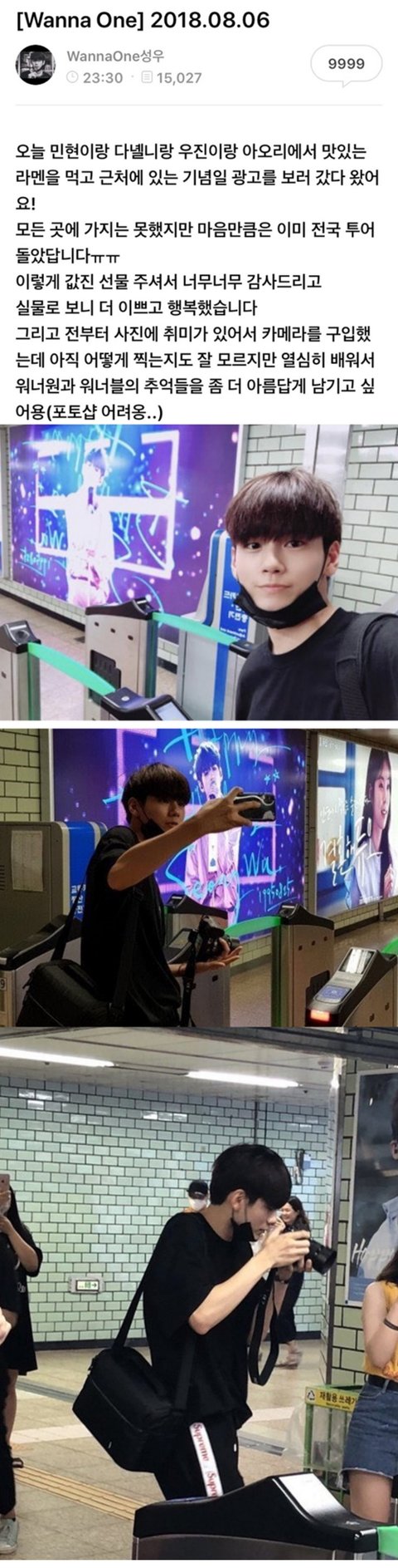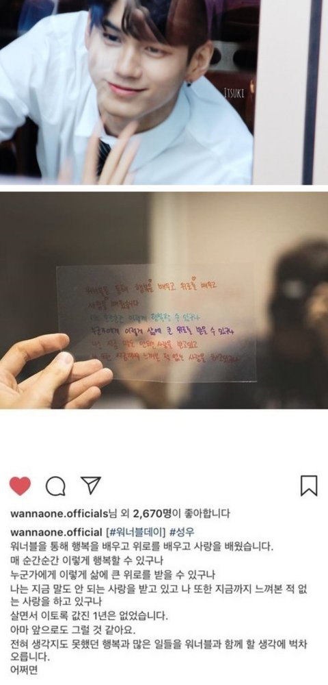 오늘은 성우가 워너원으로 활동하면서