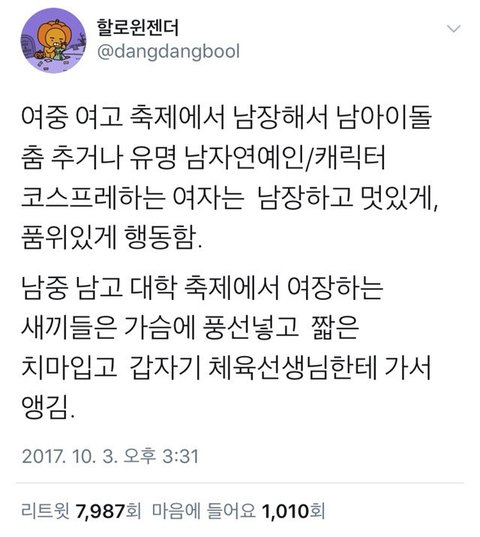 어린여자들 좋아해서 목매다는놈중엔 저런남자들이 많다는거예요.