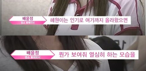 진짜 이해가 안가던데... 표정도 맨날 무표정에 뚱-하고.. 열정 의지도 모르겠고 간절해보이지도 않고 실력이 진짜... 못하는 정도가 아니라..... 얼굴도 이 모든걸 포용할만큼 예쁜지도 모르겠어