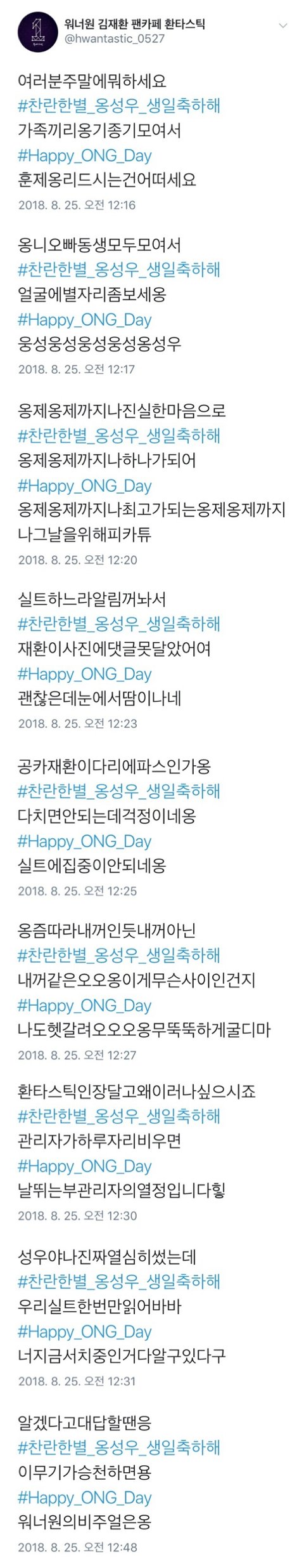 타멤버 생일에 드립력 폭주해버린 워너원 김재환 팬카페 환타스틱