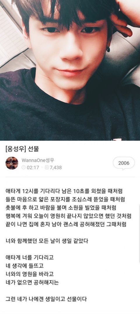 아맞다 오늘은 옹성우의 24번째 생일임! 생일축하해옹!!ㅎㅎ