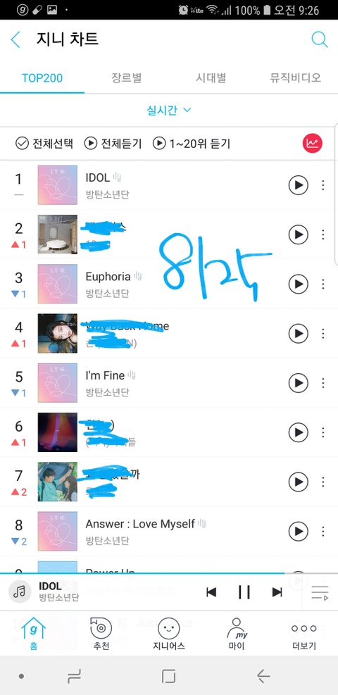 다들 자고 있니? 유포리아가 3위에 아이돌까지 1위 간신히 버티고 있는 느낌이야