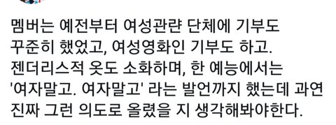 만약 타투가 아니라 뮤비 촬영을 위해 일회성으로 그린 그림이라도 이걸 사진까지 찍어서 팬들이 보는 인스타에 떠억하니 올린다는건 여성 성적 대상화 문제를 인식하지 못한 세훈의 무지함이 불러온 참사.