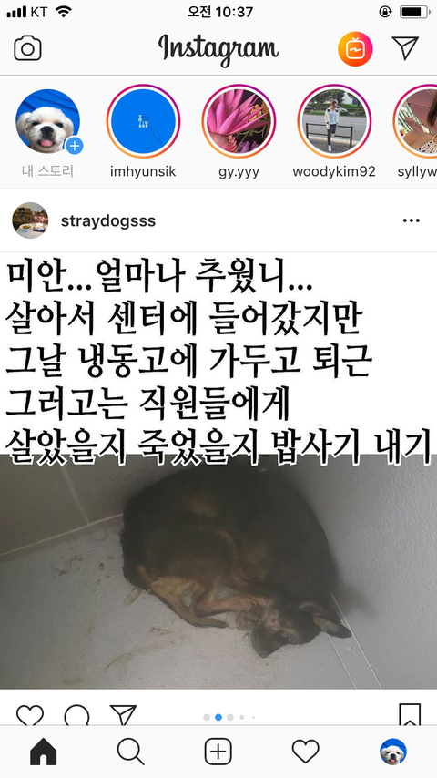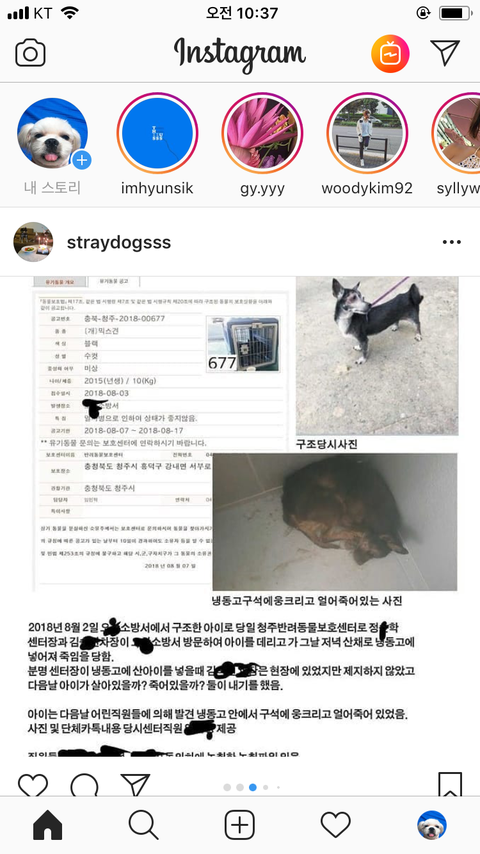 소방서에서 건강하고 애교도 많은 강아지를 인계해가서는 냉동고에 넣고 직원들과
