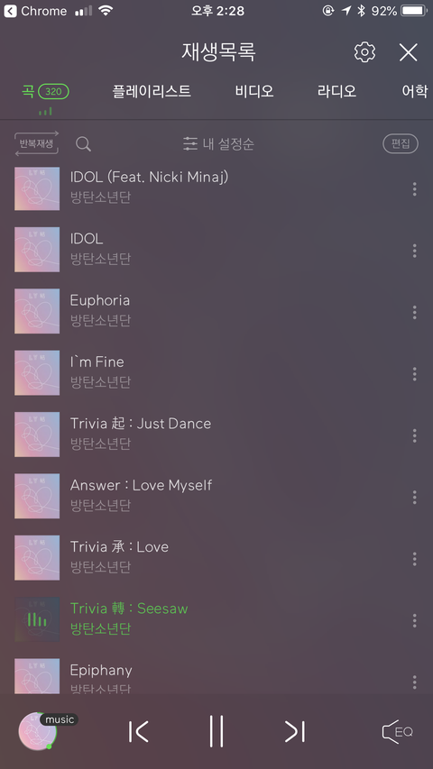 지금 노래 듣고있는데 이번앨범에서 처음 나온곡 알려줄수 있을까?? 캡쳐에 나온게 내가 이번에 처음본거 같은곡이야 틀렸으면 알려주라 검색해볼려했는데 기사에도 안나오길래!! 고마워 이번노래 정말좋다! !