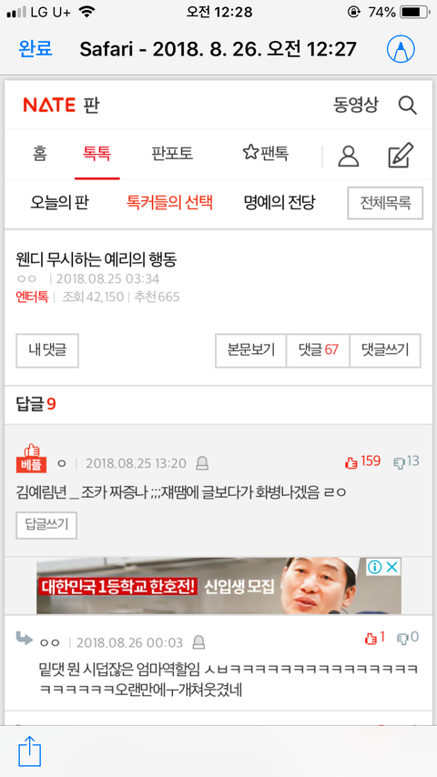 댓글 많은 톡