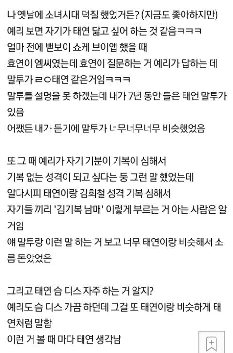 이 글 옛날에 캡쳐해놨었는뎈ㅋㅋ예리