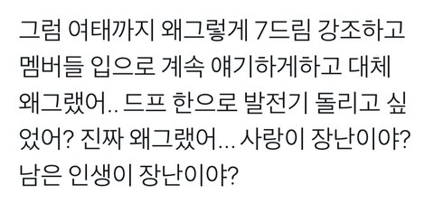 왜 자꾸 7드림 강조했어 스엠아? 나같으면 지금 이 화력 이 조합이 아까워서라도 입 닦고 고정이라고 했겠다 너네 말 바꾸는 거 잘하잖어 ㅋㅋ