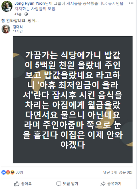 음식값 인상의 씁쓸함