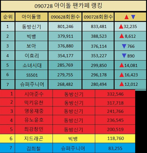 2001년 H.O.T., 신화, g.o.d, 2002년 신화, g.o.d, 플라이 투 더 스카이2003년 신화, g.o.d, 에픽하이2004년 동방신기, 신화, g.o.d2005년 동방신기, 신화, g.o.d2006년 동방신기, SS501, 슈퍼주니어2007년 동방신기, 빅뱅, SS5012008년 동방신기, 빅뱅, SS5012009년 동방신기, 슈퍼주니어, SS5012010년 샤이니, 2PM, 비스트2011년 빅뱅, 비스트, 샤이니2012년 빅뱅, 인피니트, 엑소2013년 엑소, 샤이니, 빅뱅2014년 엑소, 인피니트, 위너2015년 엑소, 빅뱅, 인피니트2016년 엑소, 방탄소년단, 빅뱅2017년 방탄소년단, 엑소, 워너원2018년 방탄소년단, 엑소, 워너원