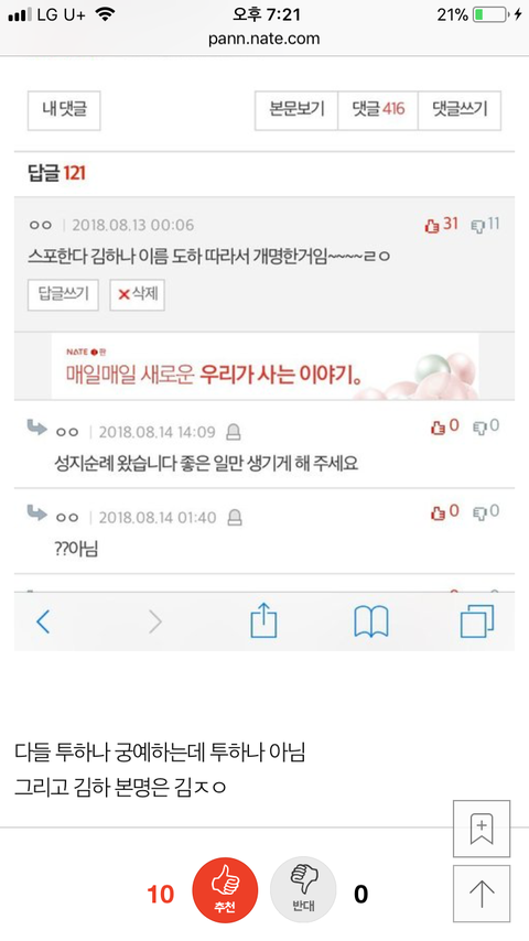 댓글 많은 톡