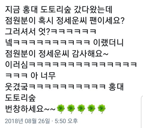 타팬인데 정세운님 호감임ㅋㅋ팬들 팬싸 후기도 너무 귀엽고ㅋㅋㅋ이런글 너무 좋다 까글 보기 싫었는데ㅠㅠ