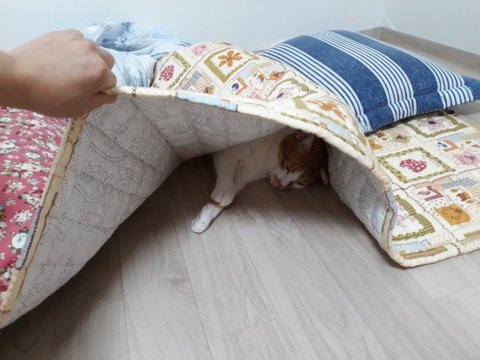 도칠이가 자꾸 이불속으로 파고들어가니 집사는 제대로 누울수가 없음.