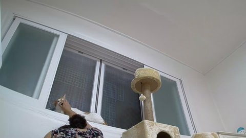 집사 목소리가 들리자 창문쪽을 쳐다봤음.
