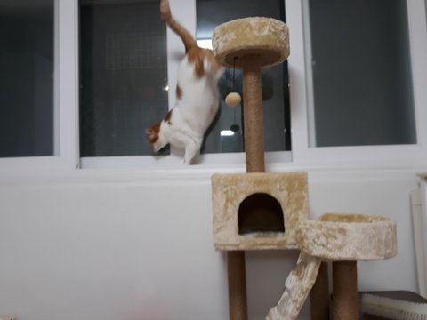 기특하게도 캣타워 절반은 이용해주고 있음.