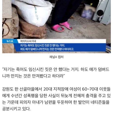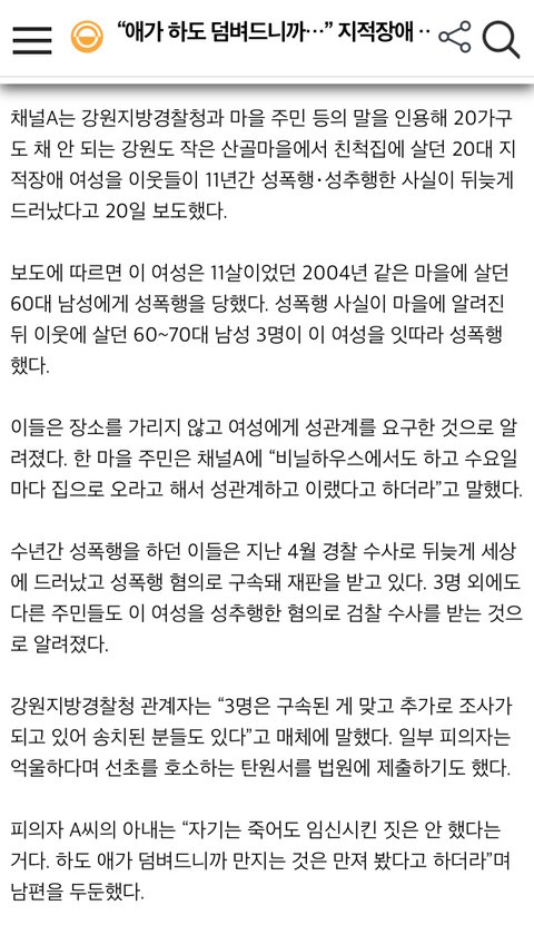 어떤 20대 지적장애인 여성이 6~70대 마을주민 7명한테