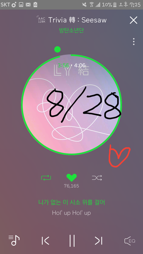 최근에 방탄에 빠지게 된 사람입니다.ㅠㅠ fake love 노래랑 안무가 너무 좋아서 관심을 가지다가 더욱더 빠졌어요!! ( 특히 널 위해 예쁜 거짓을 빚어내~ 할때 그 손동작!)