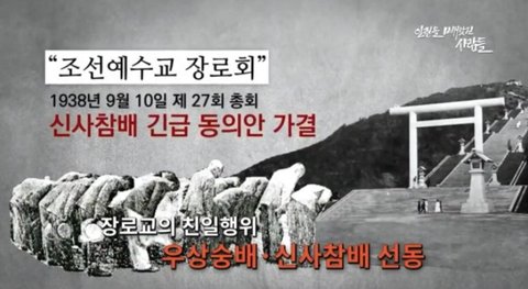 한기총의 주류 세력인 장로교는 일제강점기에 아담같이(호 6:7) 육적 이스라엘같이(출 19:5-6, 왕상 11장 참고) 하나님과 맺은 언약(눅 22:20)을 버리고 일본 신에게 절하고 찬양하였다. 구약 시대 솔로몬이 이방 신에게 절함으로 이스라엘이 남북으로 갈라져 망한 것같이 우리나라도 그러한 것이다. 이 사실은 고신파에게 물어 보라(* 일본 신에게 절하지 않아 투옥되었던 목사들이 광복 후 장로교에서 갈라져 나와 결성한 교단이 고신파이다).한기총 소속 교단인 장로교가 일본 신에게 절하고 찬양한 것은 일본의 앞잡이요 친일파 행동을 한 것이며, 일본 정권에게 권세를 얻기 위함이었다. 한기총 소속 장로교단이 우리나라 쿠데타 정부의 삼선개헌을 지지한 것도 권세를 얻기 위함이었다. 아니라 하겠는가? 이것이 어찌 예수교라 하겠는가?