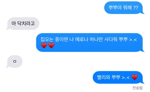 아침에 일어나서 뿌뿌 잘자떠?? 이러니까 닥치라고 욕함 ㅋㅋㅋㅋㅋㅋㅋㅋㅋㅋㅋㅋㅋㅋㅋㅋㅋㅋㅋ 한동안 뿌뿌라고 부를예정임