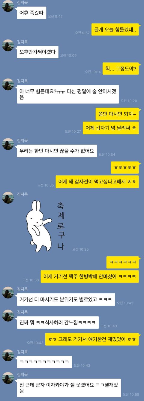 화욜에 술처먹고 수욜은 속아프다고 저랑 만나 해장했는데
