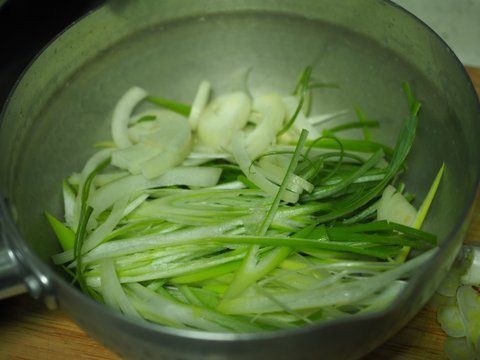 2. 파는 먼저 채를 쳐주시고 3분의 1정도는 남겨서 고기 볶을때 씁니다.