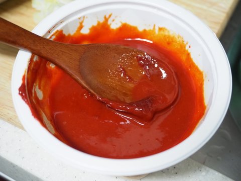 3. 파무침 양념은 고추장 1 설탕 1 식초 4 고춧가루 1 잘 섞어서