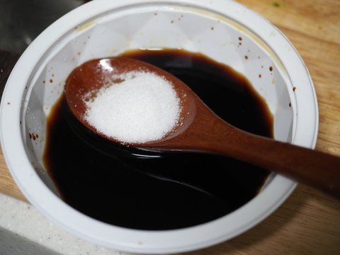 5. 고기에 들어갈 간장양념 만듭니다. 간장 1 물 1 맛술 1, 설탕 0.5 넣고 잘 섞어두고
