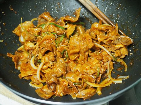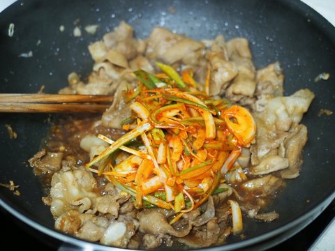 원래 요리에는 통후추를 갈아서 만들지만 왠지 대패는 꼭 저 가루 순 후추를 뿌려야 할 것만 같은 강박관념이 듭니다. 사실 맛도 얘가 더 잘 어우러지는 거 같은 느낌이 듭니다. 고기가 어느정도 익으면 간장양념 부어서 볶다가