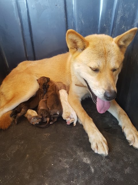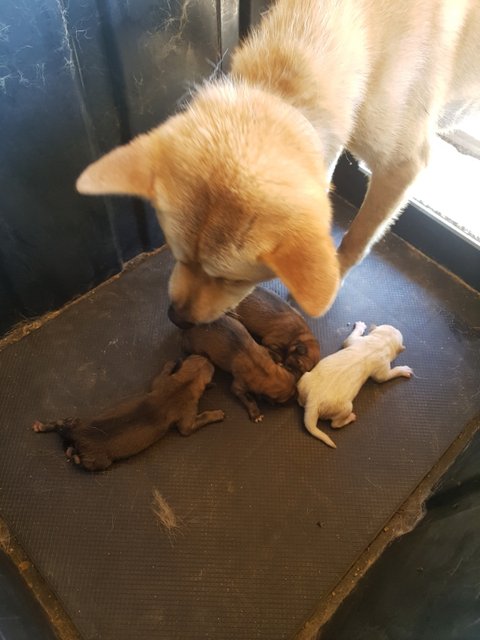 아침까지도 주는 캔을 맛있게 먹고 펄쩍펄쩍 뛰던 녀석이 아무도 없는 보호소에서 씩씩하게 4마리 새끼를 출산했습니다.