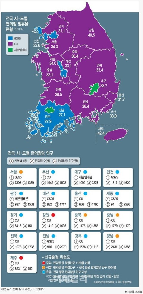 전국 시도별 편의점 점유율