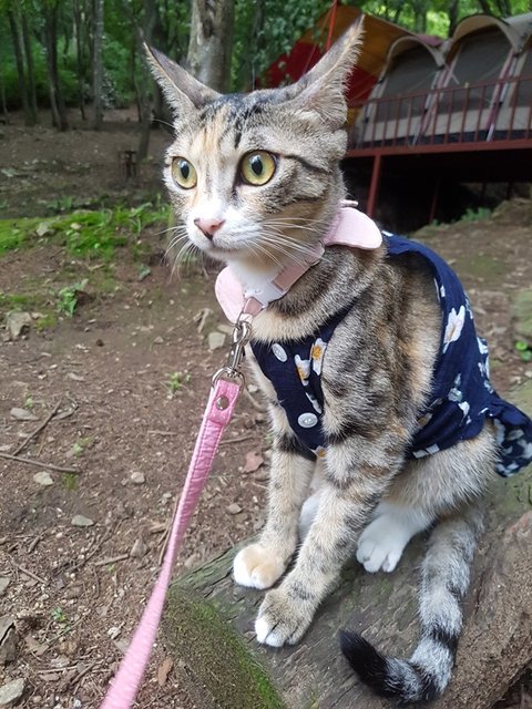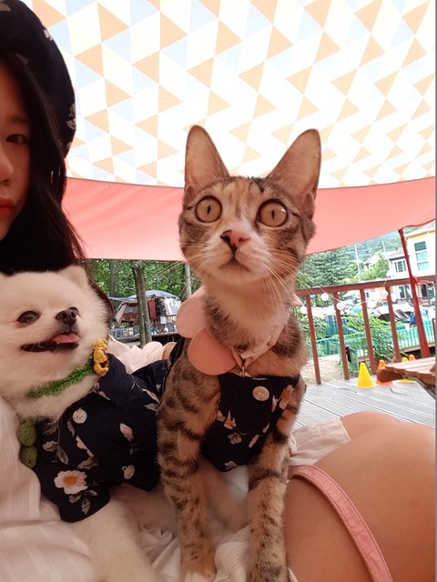 고양이 저렇게 델꼬 다니면 스트레스 받는데... 주인 좋자고 고양이 혹사시키는 일...