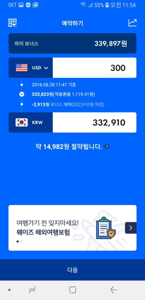 여행갈 때 웨이즈로 환전하면 100% 우대해준다네요?!