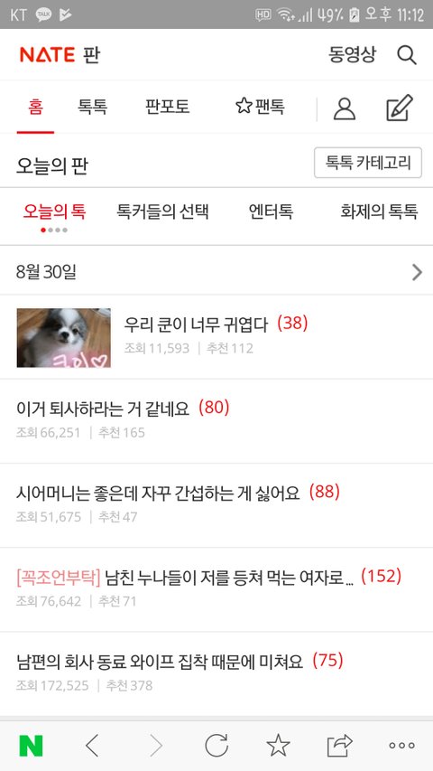 뜬금없는데 쿤 오늘의톡 랭킹에 올라옴 ㄷㄷ