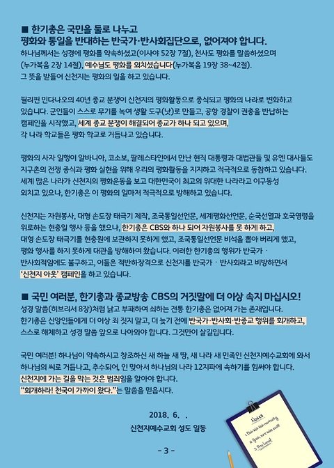 위와 같은 행위를 한 한기총을 믿는 자들도 같은 반국가·반사회·반종교인 자들이며,