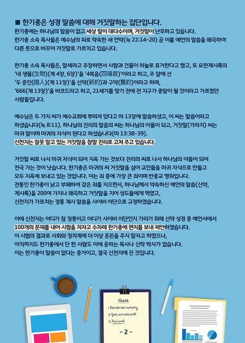성경에 무식한(호 4:6 참고) 한기총은 신천지예수교회(약칭 신천지)와의