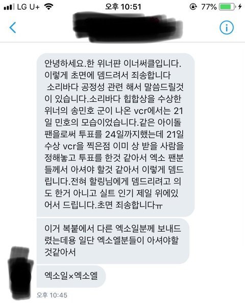 @@@팩트@@@ 송민호는 힙합부문에서 21일 이전부터 투표 마감일인 24일까지 쭉 1등을 유지했고 음원순위 역시 높았다. 내정자는 무슨 어이가 없어서ㅋㅋㅋㅋㅋㅋㅋ 위너 송민호는 불공정 시상과 관련 없는 사람이고 저 디엠 보내신 계정주도 이 캡쳐본 지워지길 원하고 있습니다 내려주세요.