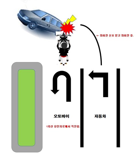 직진하던 오토바이가 제 차를 들이받은 사고가 났네요..